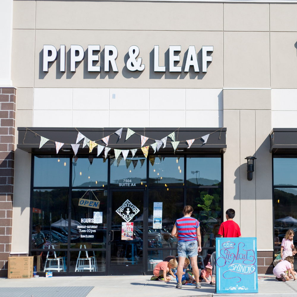 Piper & Leaf at Constitution Park is our shop located downtown with lots of seating and free wifi. Plenty of outdoor space to let the pups and kiddos play in the newly renovated historical park. Come relax and enjoy downtown Huntsville.