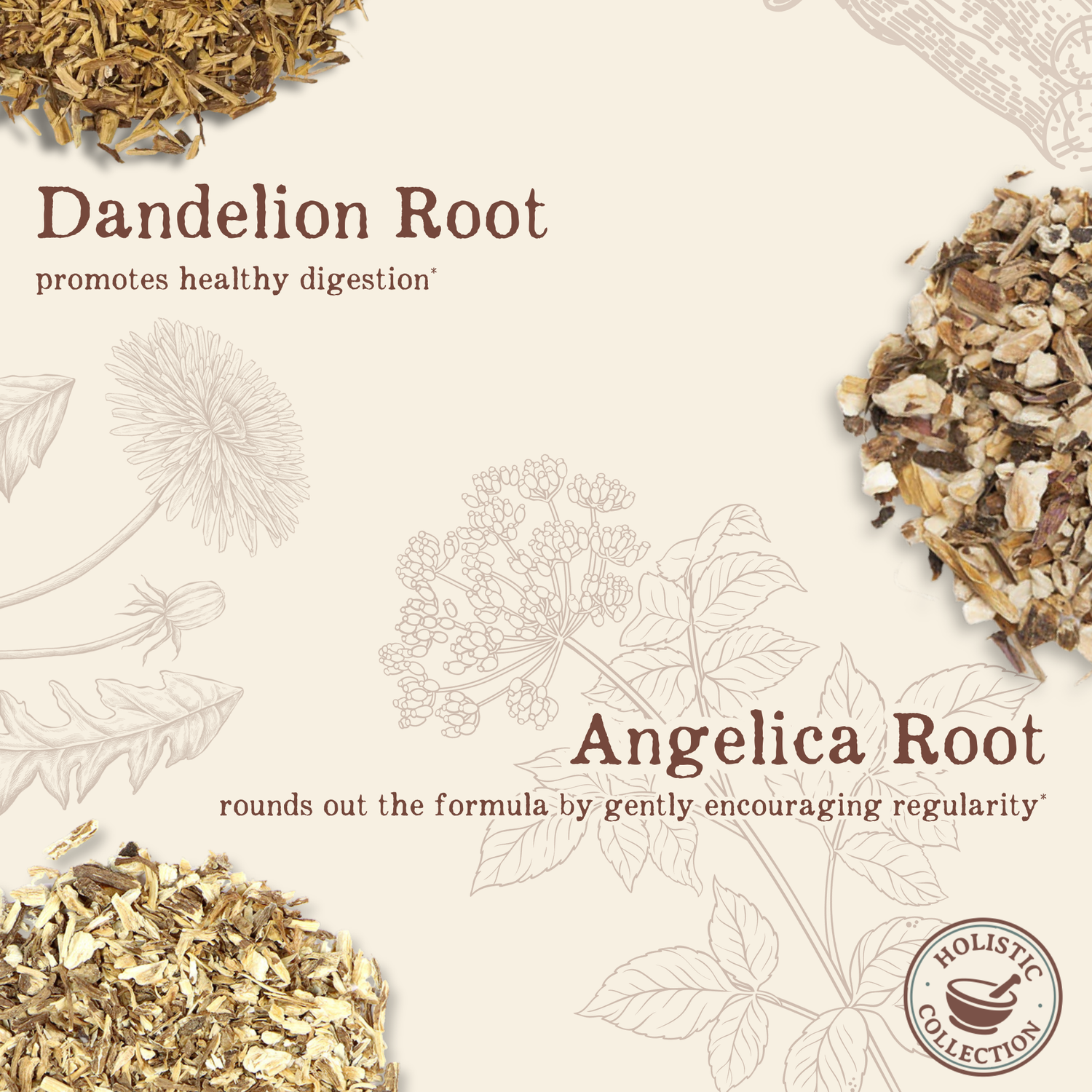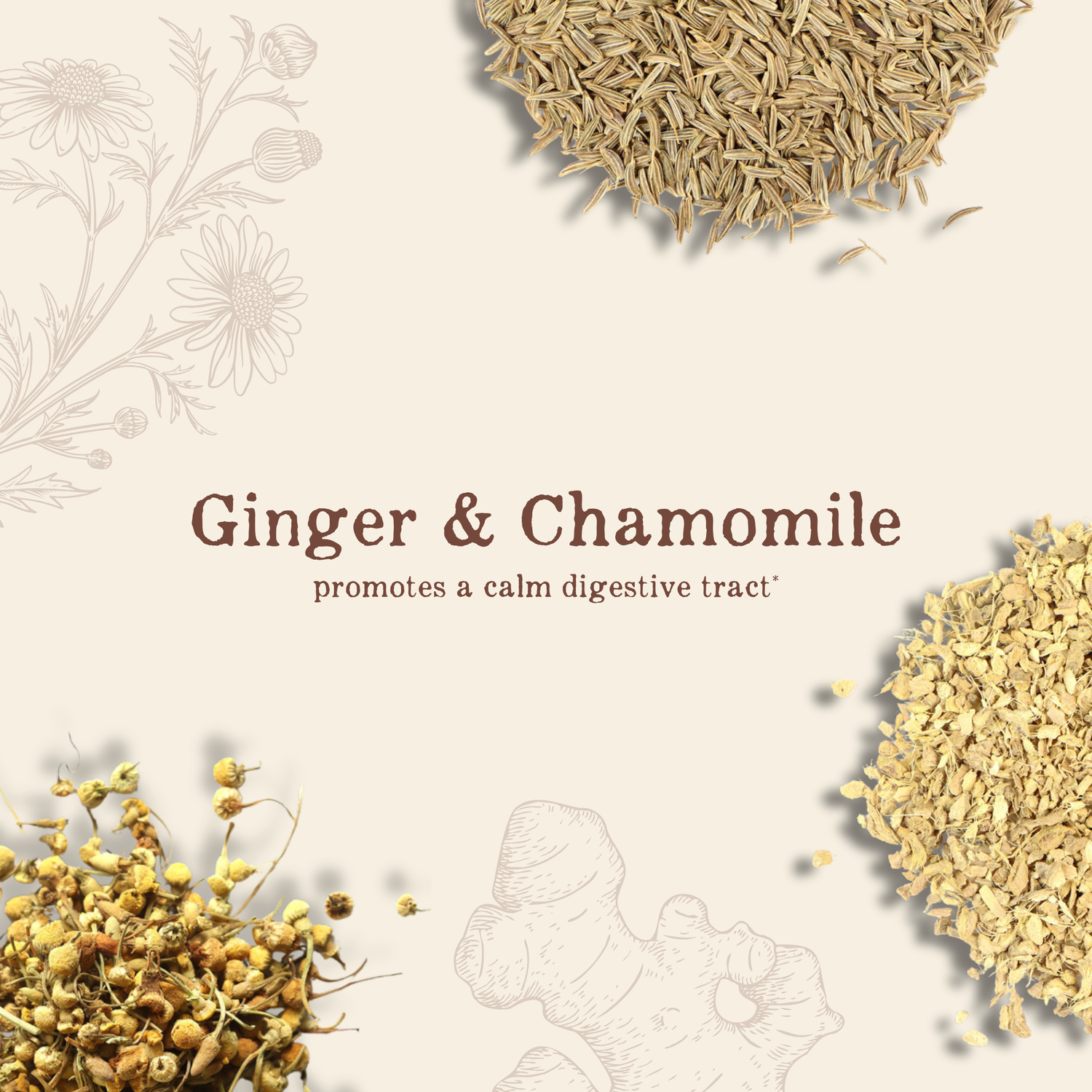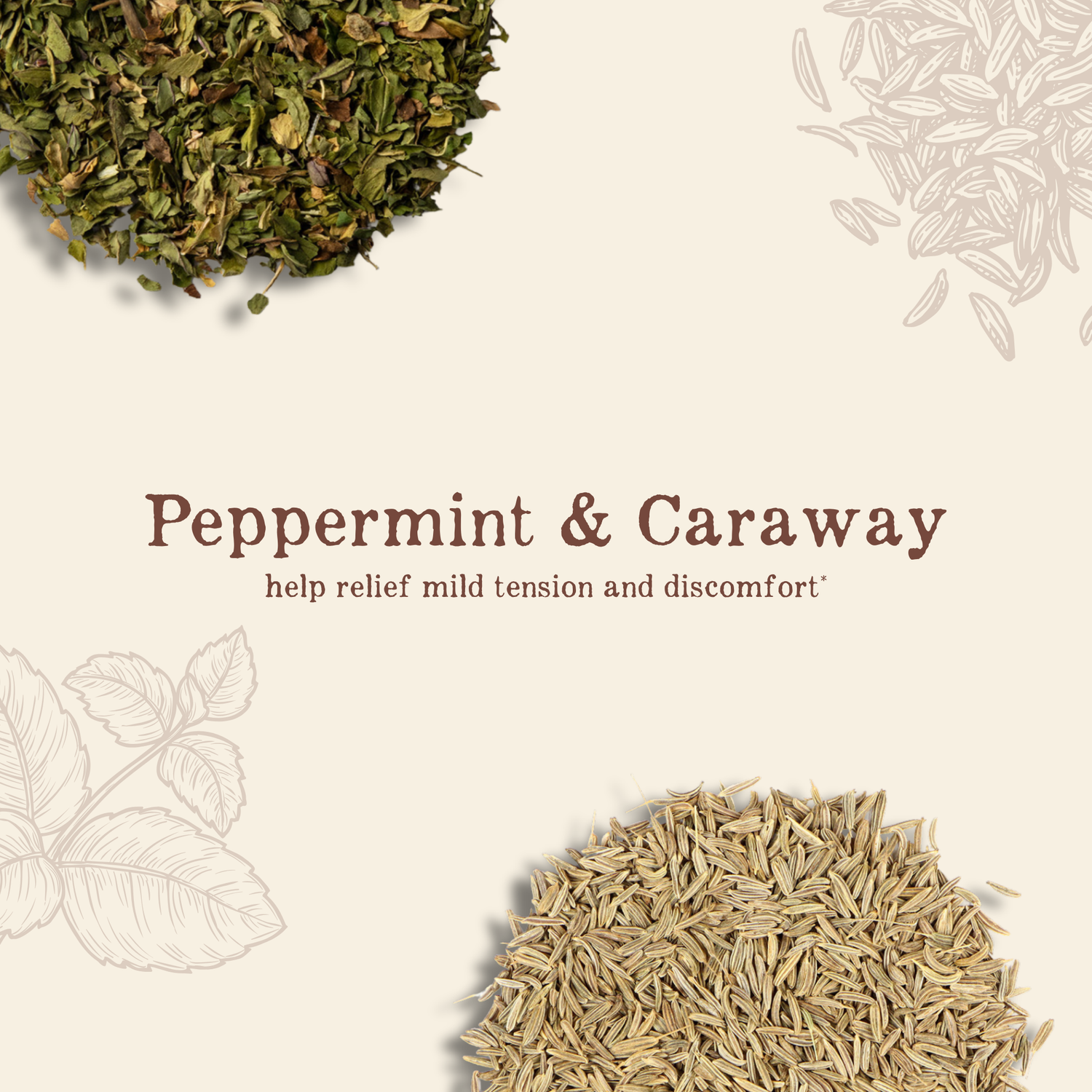 A fast-acting herbal blend designed to support healthy digestive function, soothe discomfort and help ease occasional bloating. *