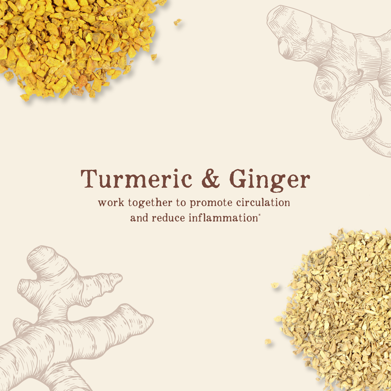 Formulated for broad-spectrum inflammation relief, this potent blend targets joint, muscle, and systemic inflammation. Turmeric and ginger provide the core anti-inflammatory activity and enhance circulation, while cinnamon and cloves deliver concentrated antioxidant support. Willow bark contributes natural salicylates that help ease discomfort, especially in joints and soft tissues. Cooling botanicals—lemongrass, peppermint, and fennel—soothe digestive inflammation and balance the warming spices.