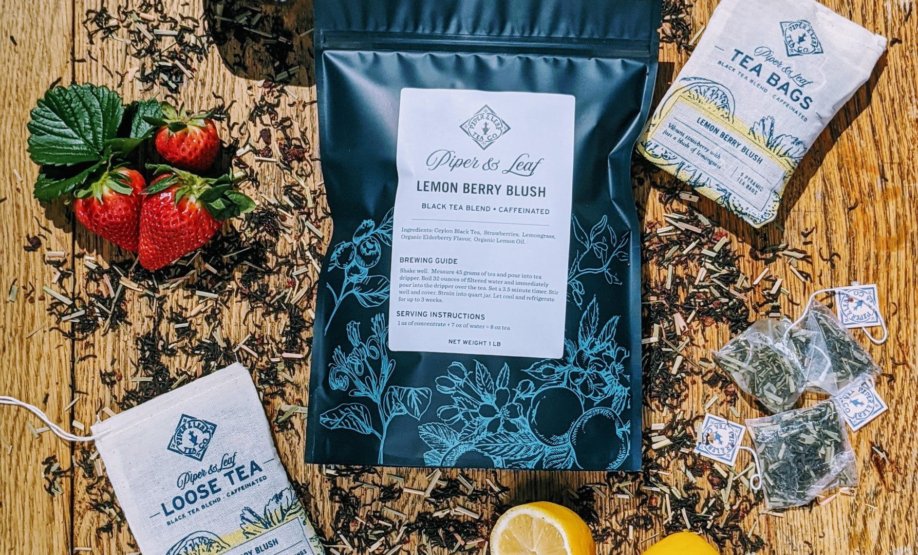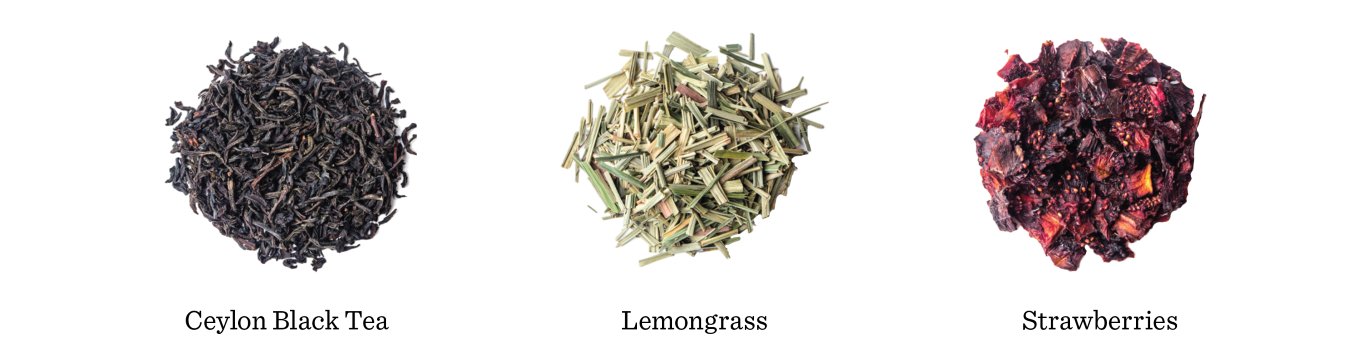 Ceylon Black Tea, Lemongrass, Strawberries, Organic Elderberry Flavor, and Lemon Oil