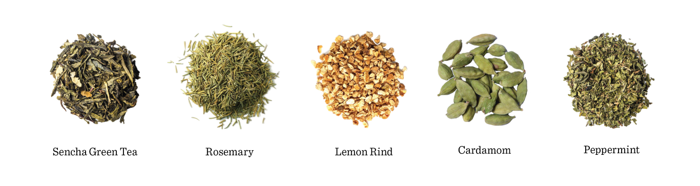Ingredients: Sencha Green Tea, Rosemary, Lemon Rind, Cardamom, Peppermint, Lemon Oil, Organic Natural Flavor