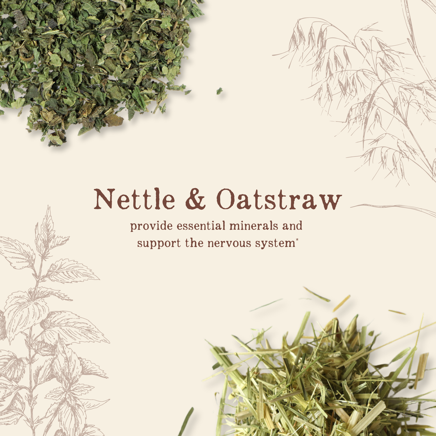 nettles, oatstraw, raspberry leaf, alfalfa, and red clover
